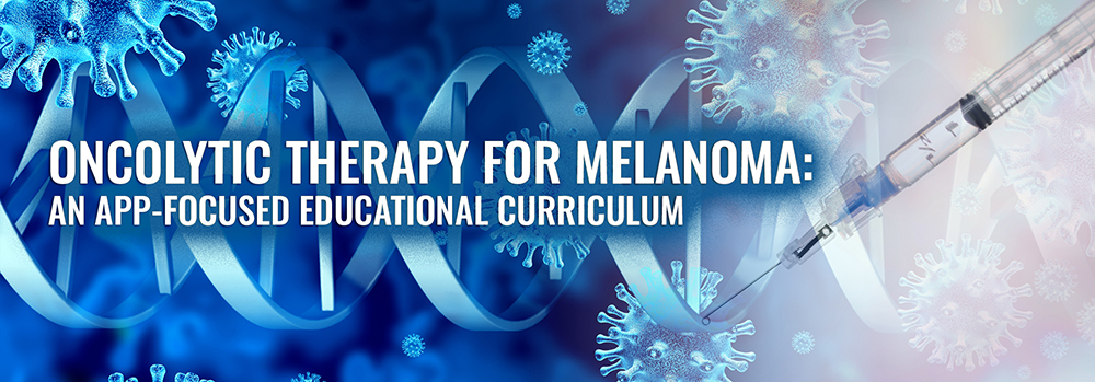 Oncolytic therapy was first introduced in the field of oncology a decade ago. Recently, advancements have been made in oncolytic therapy, with the promise of potentially transforming the melanoma treatment landscape. In anticipation of an expanded role for oncolytic therapy, providers need updates on the mechanism of action, efficacy, safety, and practical aspects of each regimen. Advanced practice providers often spearhead the adoption of technologies such as intralesional injections in health systems. Therefore, they need up-to-date education about oncolytic therapies, opportunities to develop competency in intralesional injections, as well as support for credentialing. This curriculum, which carries the Advanced Practitioner Society for Hematology and Oncology (APSHO) Seal of Acceptance, contains didactic content on oncolytic therapies, instructional videos on techniques for intralesional injections, supportive strategies for credentialing, as well as a future opportunity for hands-on training for intralesional injections at JADPRO Live. We trust that you will find this content helpful in the adoption of an expanded role for oncolytic therapies in melanoma.